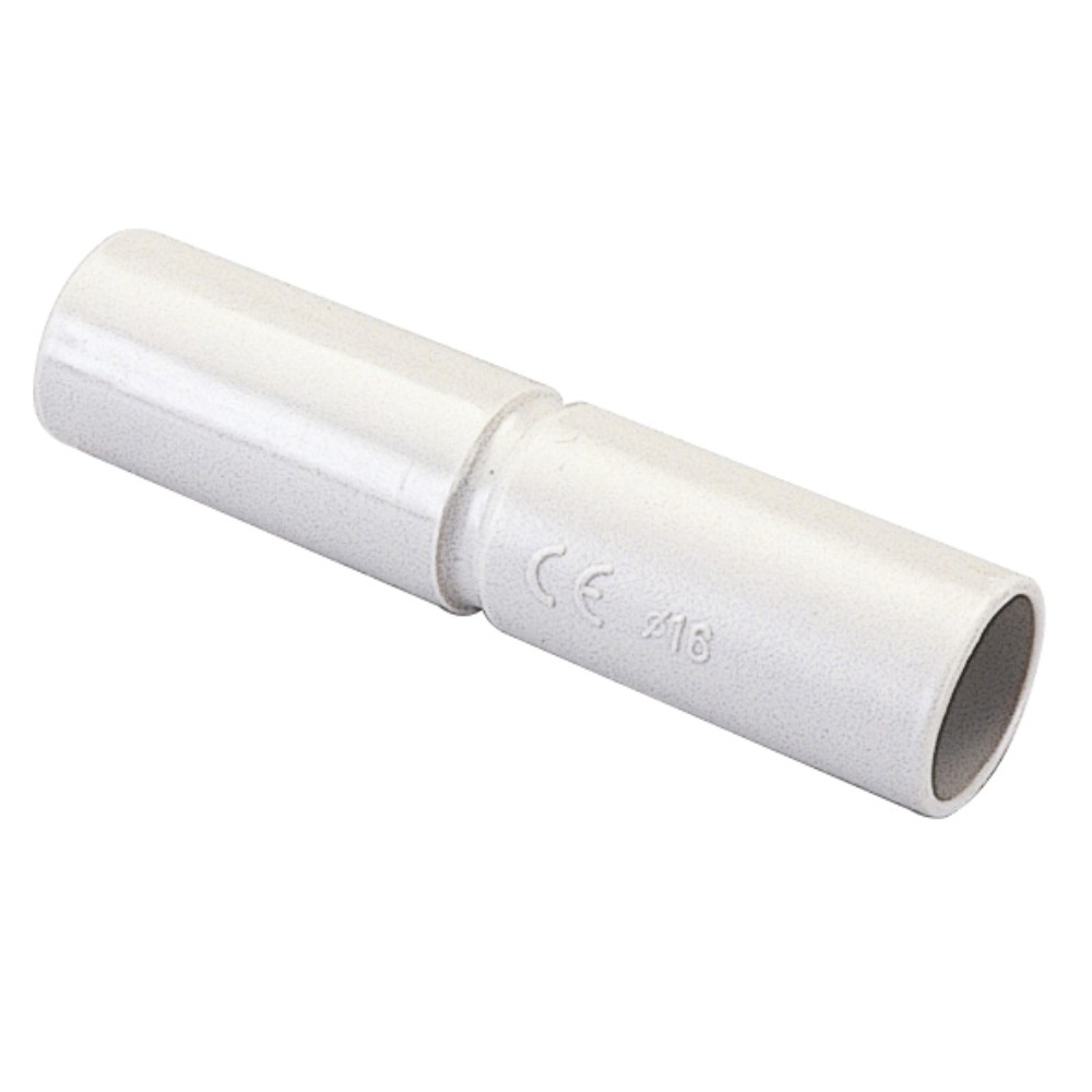 Giunto per tubi rigidi diametro 16 mm, IP40. Realizzato in materiale termoplastico autoestinguente ad alta resistenza meccanica. Colore: grigio. IP40: protezione contro i corpi solidi con diametro superiore a 1 mm.