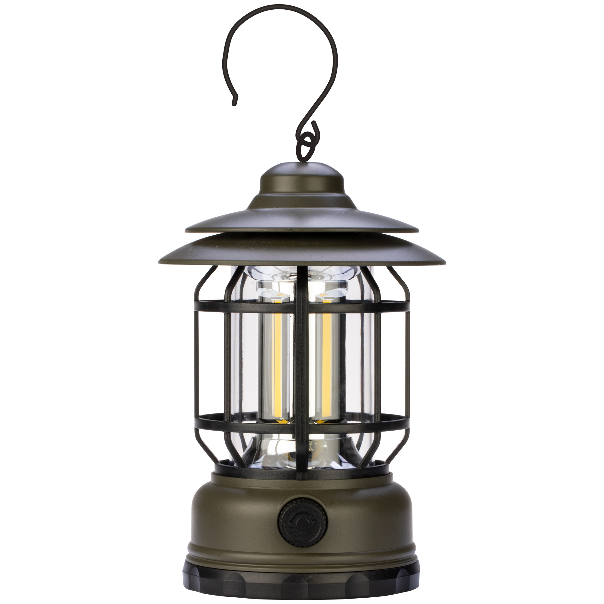 Lampada multiuso ricaricabile 300 lm 5W, luce calda. Alimentazione tramite batteria Li-ion 3.7V 1200mAh (cavetto USB tipo C incluso). Provvista di interruttore ON/OFF per accensione e spegnimento e regolazione della luminosità. Con pratico gancio per appendere il prodotto. Può essere usata anche come lampada da tavolo / appoggio Tempo di ricarica 2h. Autonomia: luminosità 100%,2,5h L’autonomia aumenta al diminuire dell’intensità luminosa impostata. IP44: protezione contro i corpi solidi con Ø superiore a 1mm e contro gli spruzzi d’acqua. Elegante, leggera e comoda lampada “OUTDOOR” dal design retrò. Semplice da utilizzare attraverso l’interruttore ON/OFF che ne regola anche l’intensità luminosa. Garantisce la luce ideale in campeggio ed in qualsiasi attività all’aperto in assenza di luminosità, può essere utilizzata anche nel fai da te o come semplice lampada da tavolo / appoggio. Ricaricabile anche tramite PC, power bank o con adattatore USB da auto.