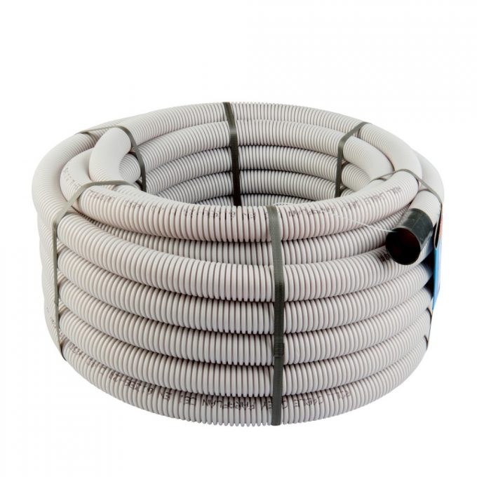 25 m tubo pieghevole portacavo in HDPE a doppia parete diametro 40 mm, provvisto di manicotto di giunzione e sonda tiracavo in poliestere. Per installazioni sotterranee in trincea.